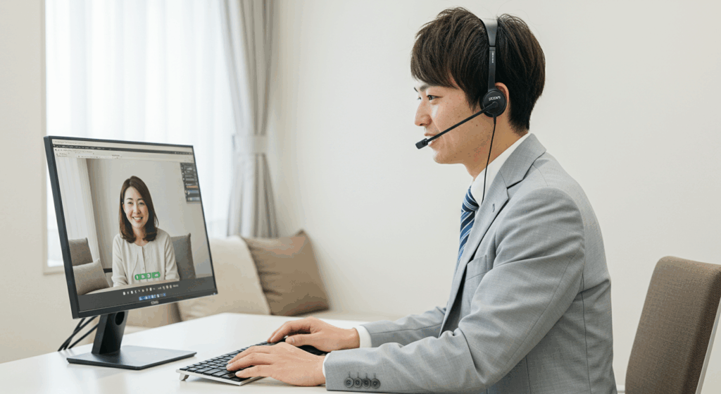 技術的なスキル(ツールの操作方法、トラブル対応)はもちろん、オンラインコミュニケーションの特性を理解させる必要がある。対面とは異なり、沈黙は不安を生む。適度な相槌、明るいトーン、はっきりとした発音――こうした基本が重要だ。