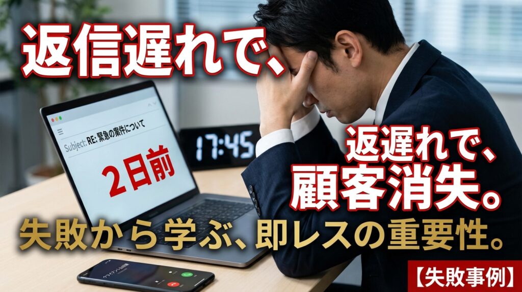 返信が翌日になった時点で、顧客の心理的な「購買温度」は確実に下がっている。最悪の場合、「あそこはレスが遅い会社」という印象が定着し、二度と連絡が来なくなる。