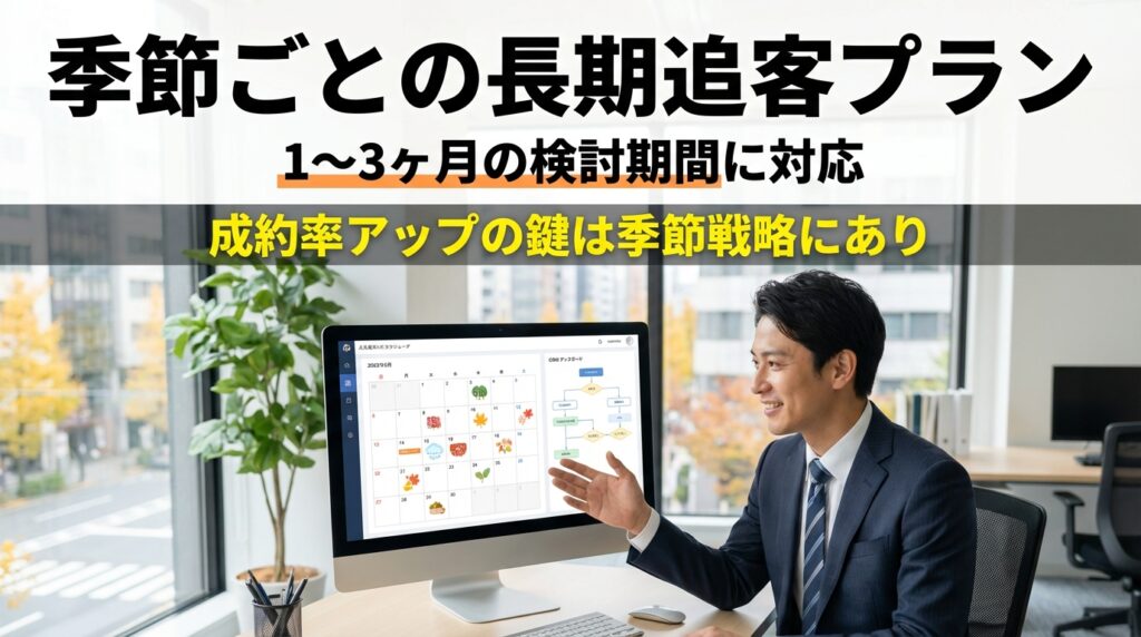 季節が変われば、顧客の生活環境も心理状態も変わる。その変化に合わせたコミュニケーションを設計していなければ、1〜3ヶ月の検討期間を「待つだけの時間」にしてしまう。