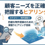 2026年1月10日 / 最終更新日 : 2026年1月4日 housecomfc 05. 経営全般 成約率を劇的に変える「深掘りヒアリング」の技術──顧客が本当に求める物件を提案するための7つの質問法 「希望条件どおりの物件を紹介したのに、なぜか決まらない」「何件も内見に行くのに、契約に至らない」──そんな悩みを抱える不動産営業担当者は少なくない。実は、この問題の根本原因は物件の質ではなく、「ヒアリングの深さ」にある。 […]