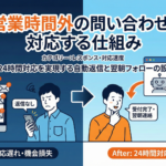 2026年1月7日 / 最終更新日 : 2026年1月4日 housecomfc 01. 集客・反響獲得 【夜間・休日も取りこぼさない】営業時間外の問い合わせに対応する仕組み|自動返信と翌朝フォローで成約率を劇的に変える実践ガイド 「夜22時に届いた問い合わせ、翌朝9時に返信したらもう他社で決まっていた」──そんな苦い経験を持つ不動産賃貸仲介業者は少なくないだろう。物件探しをする顧客の多くは、仕事を終えた夜間や週末に大手不動産ポータルサイトで物件を […]