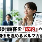 2026年2月23日 / 最終更新日 : 2026年2月13日 housecomfc 01. 集客・反響獲得 「また連絡します」の先へ――長期検討顧客を成約に変えるニュースレター活用術【不動産賃貸仲介】 「条件に合う物件が出たら連絡してください」。そう言い残して店舗を後にした顧客から、その後一度も連絡が来ない――。賃貸仲介の現場で、こうした経験をお持ちの方は少なくないだろう。 不動産情報サイト事業者連絡協議会(RSC)が […]