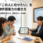 2026年2月15日 / 最終更新日 : 2026年2月6日 housecomfc 05. 経営全般 「この人に任せたい」と思わせる物件提案力の磨き方――不動産賃貸仲介で成約率を劇的に変える”目利き力”の正体 顧客が不動産会社に問い合わせる会社数は、過去11年で最多を更新した。比較検討が当たり前の時代に、「この会社で決めたい」と思わせる営業パーソンと、比較の末に選ばれない営業パーソンの差はどこにあるのか。その分水嶺は、物件その […]
